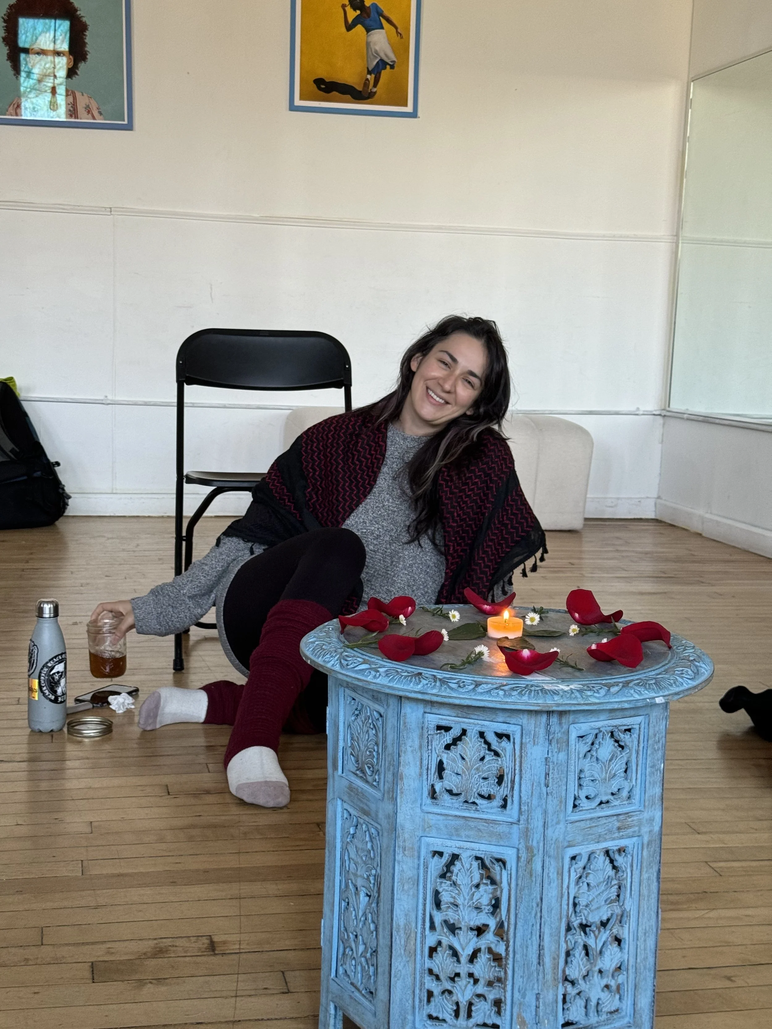 I am a mystical, multi-passionate, divergent, life time creative + ritualist and a care-centered + community aimed, somatic educator, guide and care giver with over 4 years of in-depth training and mentorship in Yoga philosophy and somatic education + care.